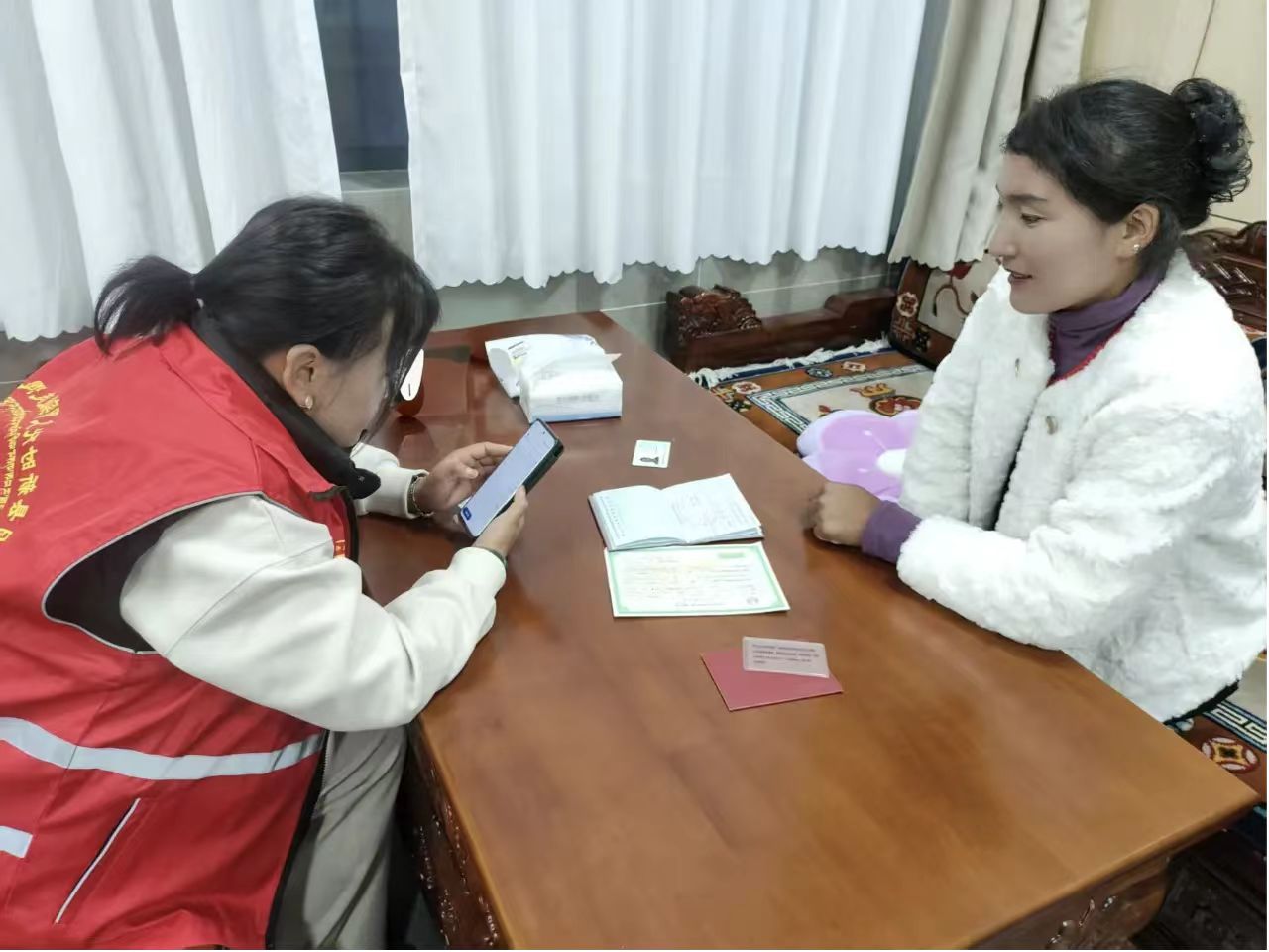 文明实践站志愿服务队,采取“线上宣传+线下走访”模式,全面讲解政策要点。针对行动不便的家庭,志愿者提供“上门收件”服务,现场指导填写申请表、核对校对各类证件,有效避免了村民“多头跑、来回跑”的困扰。面对村民的疑问,志愿者耐心解答,并协助材料缺失的家庭联系补证;对于不熟悉线上操作的家长,则“手把手”协助完成平台申报,切实做到了“不漏一户、不错一人”。