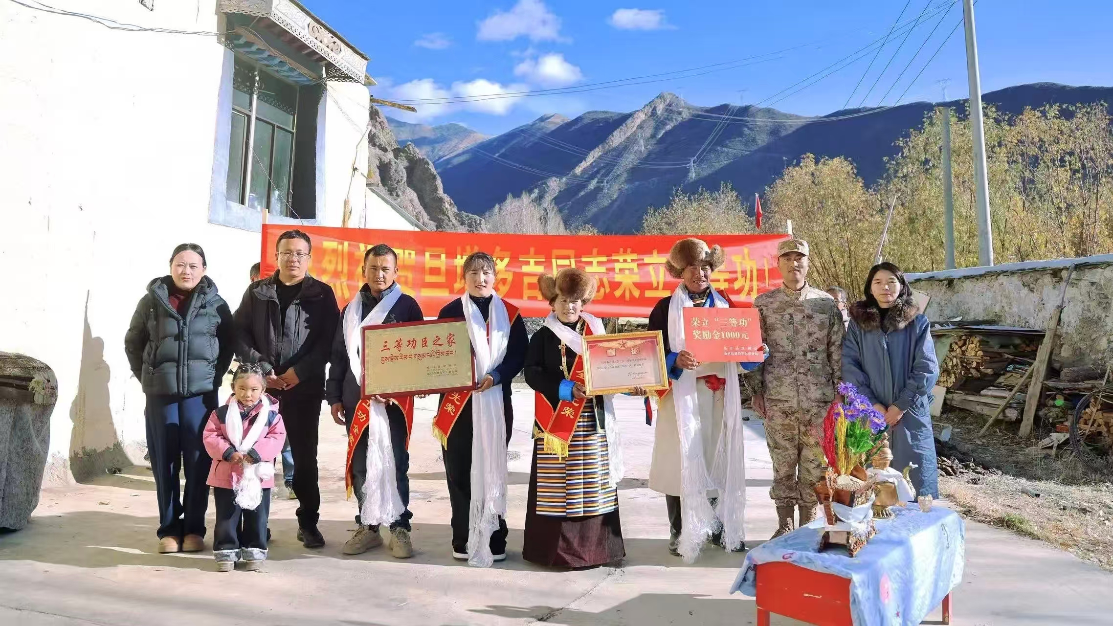 上午10时,慰问组走进旦增多吉家中,现场宣读立功通令,为父母佩戴“一人立功 全家光荣”绶带,送上烫金喜报、奖励金及慰问品。随后,详细介绍了旦增多吉在雪域边关勇挑重担、圆满完成多项急难险重任务的突出事迹,对军属长期以来的理解支持表示崇高敬意。