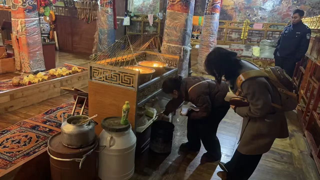 检查中,工作人员严格查验大殿内易燃物品存放、用火用电情况,重点排查是否存在违规用火、私拉电线等情况。期间,还向寺庙人员普及了消防安全知识。