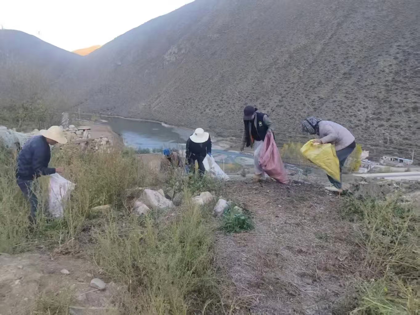 10月11日,曲果萨村驻村工作队组织开展清扫落叶志愿活动。