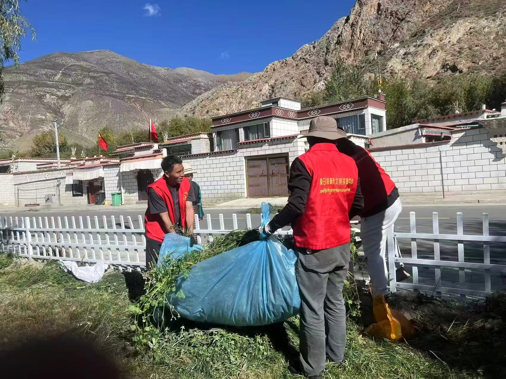 行动中,工作人员携带镰刀、锄头、垃圾袋等工具,分组前往杂草问题突出区域。面对高低不一、根系杂乱的杂草,大家分工协作,有的割除地表杂草,有的拔除深层根系,有的及时将清理后的杂草打包清运。期间,工作人员还与居民沟通交流,倾听群众建议,宣传《中华人民共和国青藏高原生态保护法》《西藏自治区国家生态文明高地建设条例》及人居环境整治工作要求,引导群众主动参与生态环境保护各项行动。