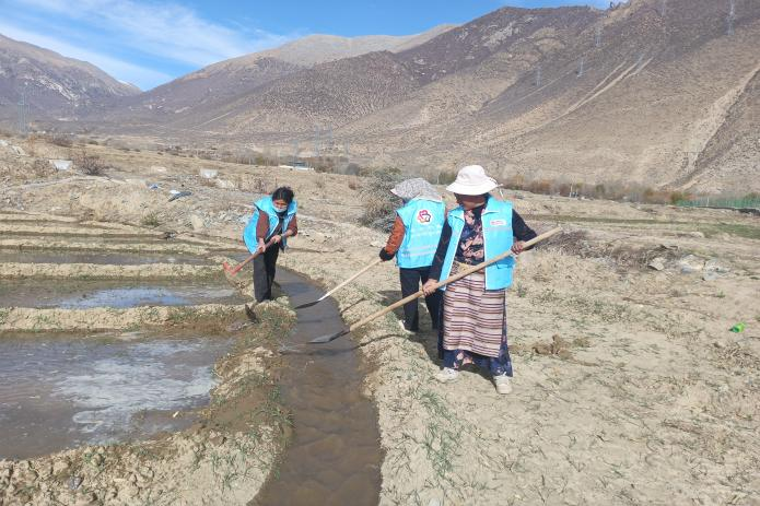 12月17日,桑日镇颇章村新时代文明实践站组织巾帼志愿服务队开展农田灌溉帮扶活动。