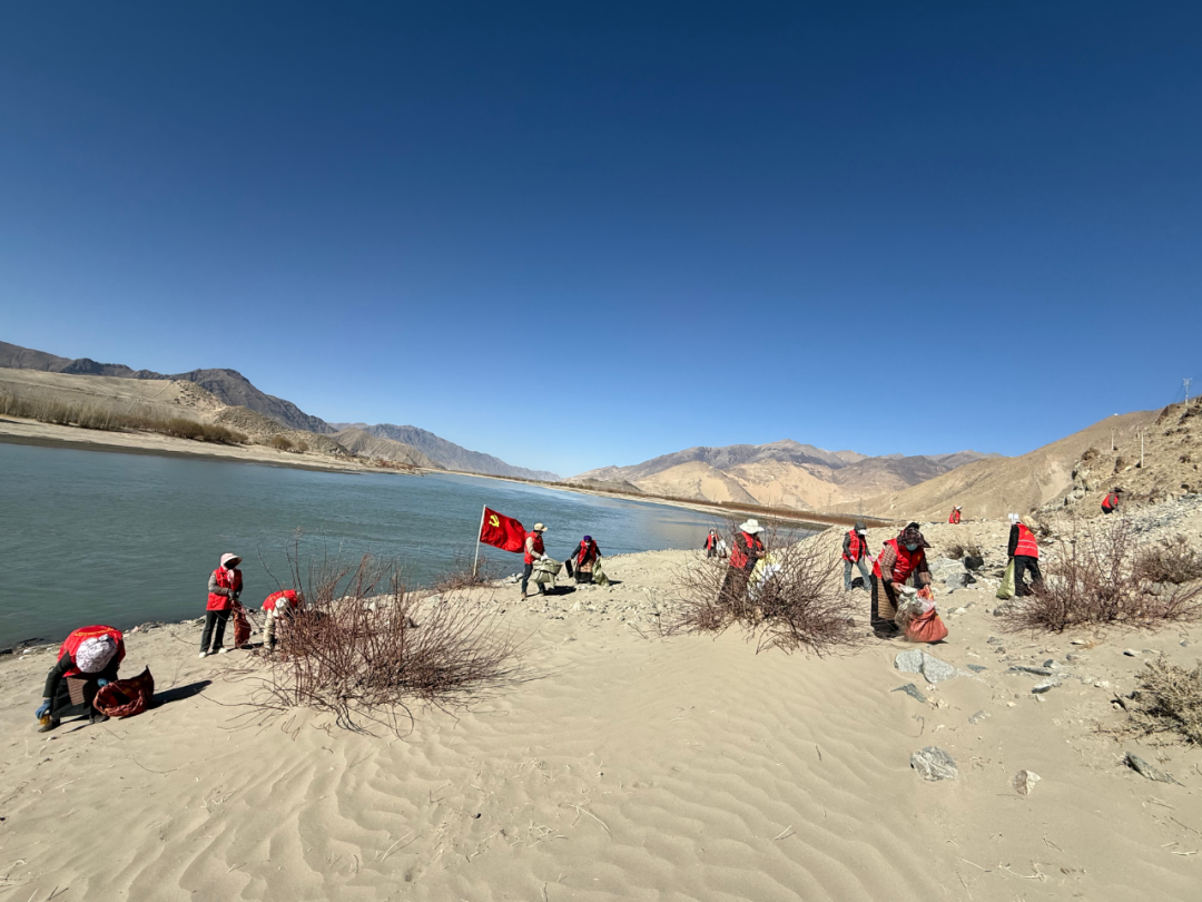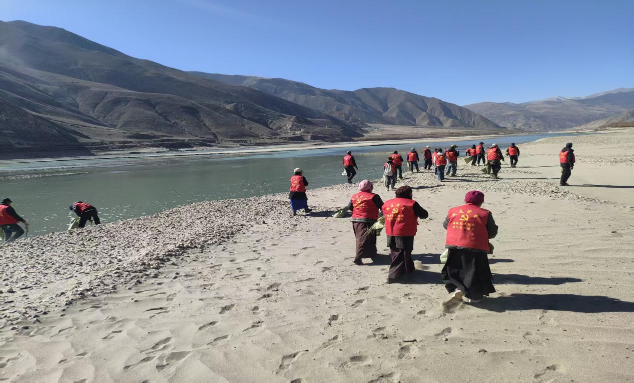 3月5日,颇章村组织志愿者在雅鲁藏布江颇章村段沿岸、省道506沿线开展环境卫生集中整治行动。
