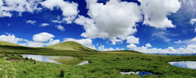 9月16日,记者驱车沿桑墨公路一路向东北方向70多公里,抵达了这片被誉为“牧人天堂”的高山牧场——三面环山,地势开阔平缓,夏日绿草如海、野花烂漫;冬季薄雪轻覆,天地间一片纯净苍茫。