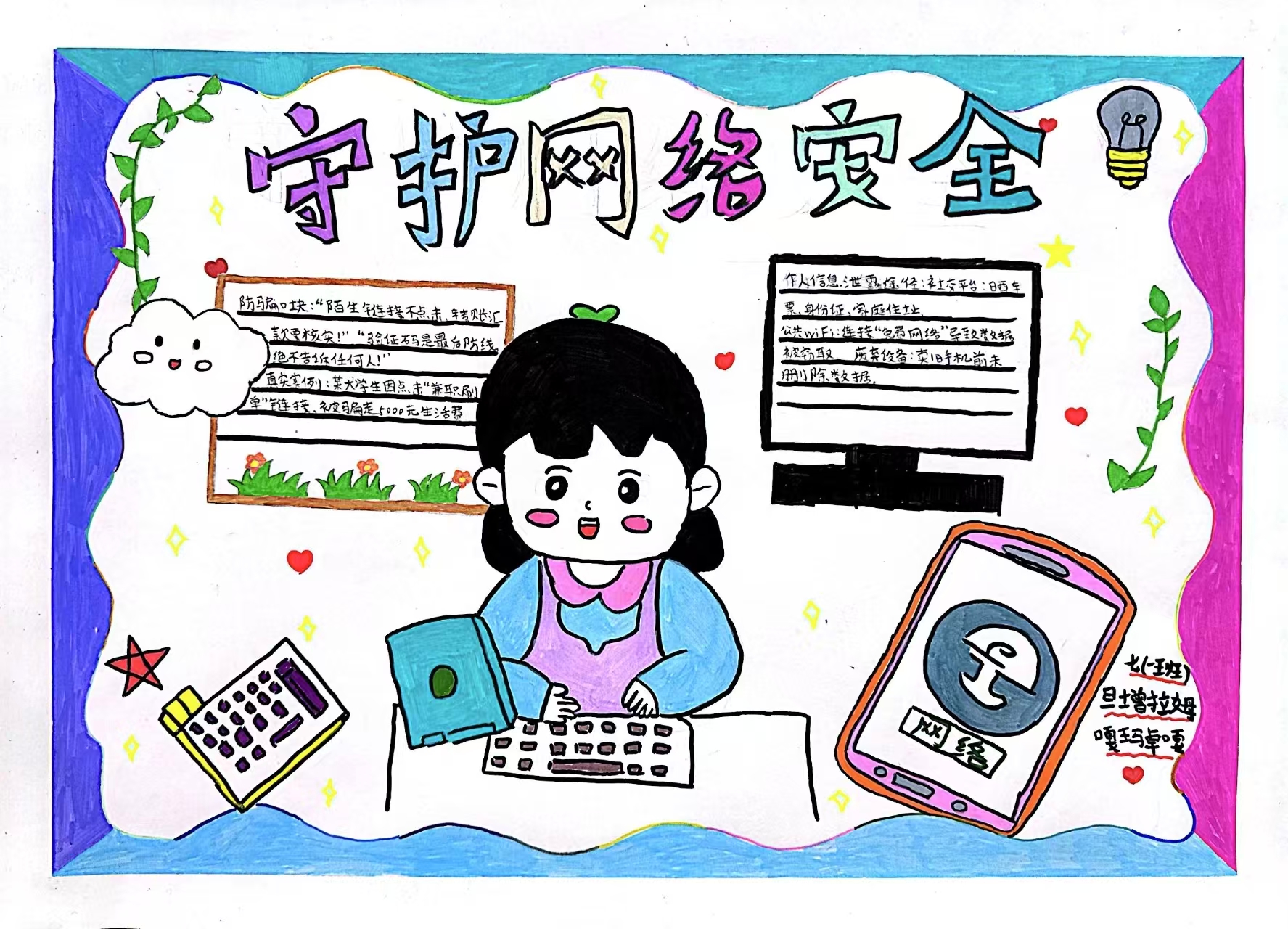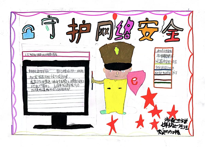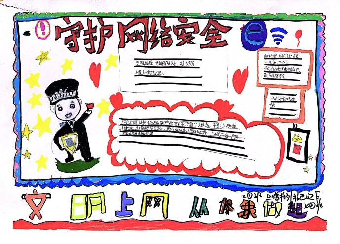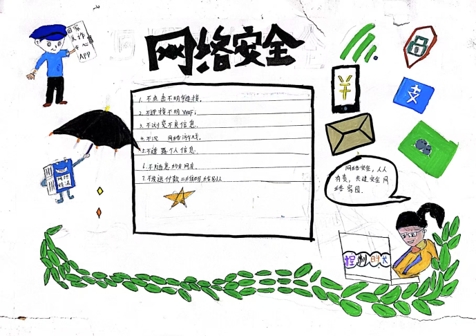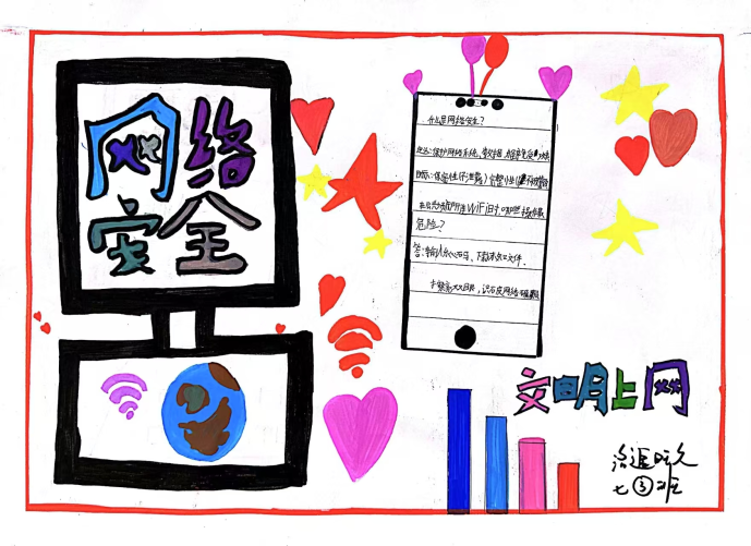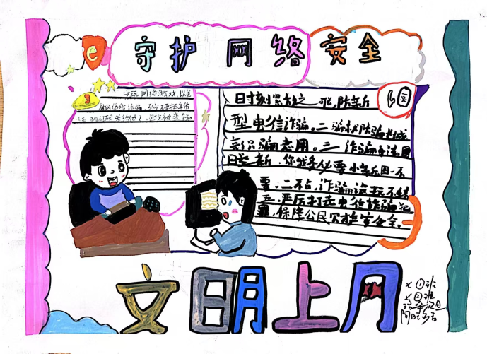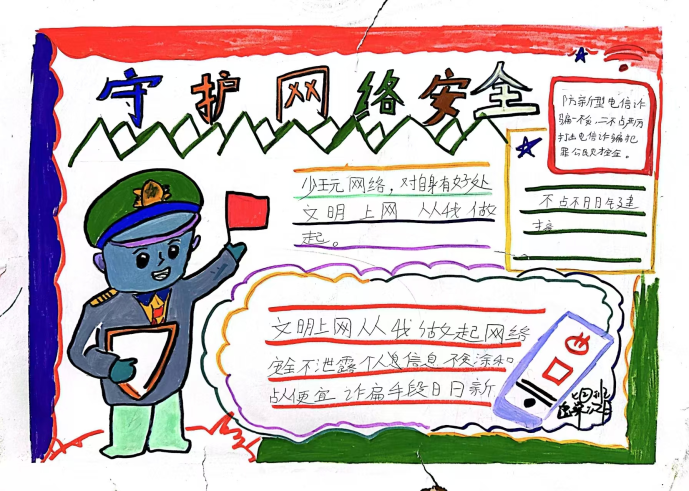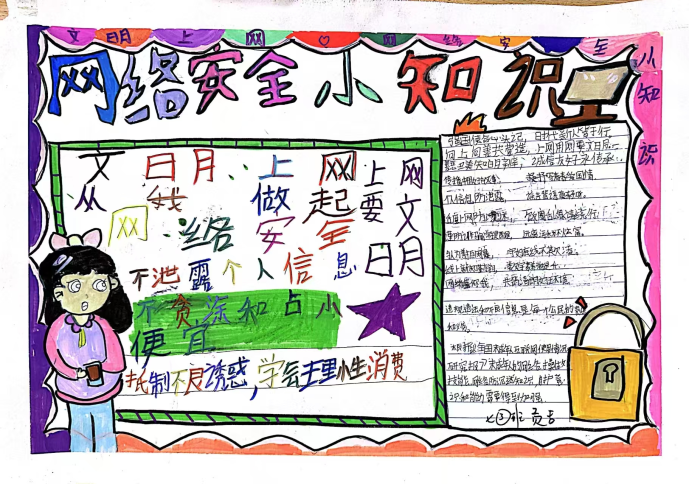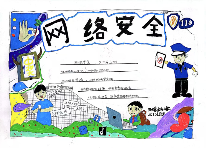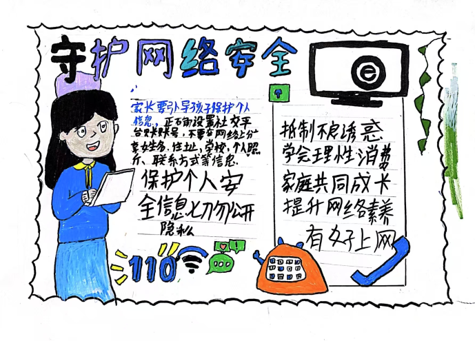 课堂上,教师以“防范网络诈骗”“保护个人信息”“拒绝不良信息”等为主题,引导学生将抽象的安全知识转化为生动画面。