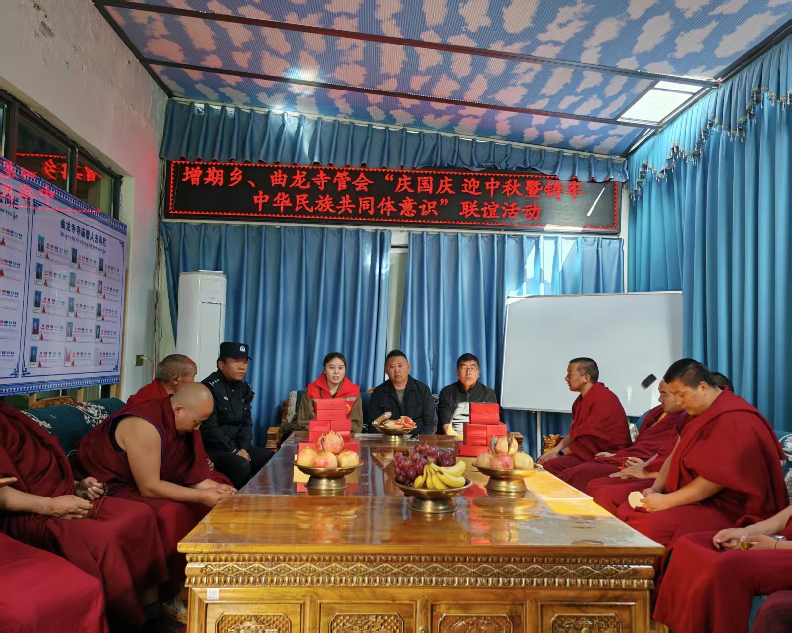 近日,增期乡新时代文明实践所联合曲龙寺管会在曲龙寺举办“庆国庆 迎中秋 铸牢中华民族共同体意识”联谊活动,20余名干部和僧尼参加活动。