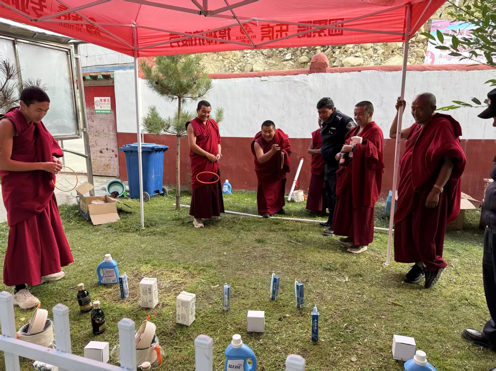 期间,寺管会干部、僧尼和志愿者们还开展了套圈趣味活动,国家通用语言文字和藏文书法比赛。大家还一同分切、品尝月饼,在轻松氛围中增进彼此感情。