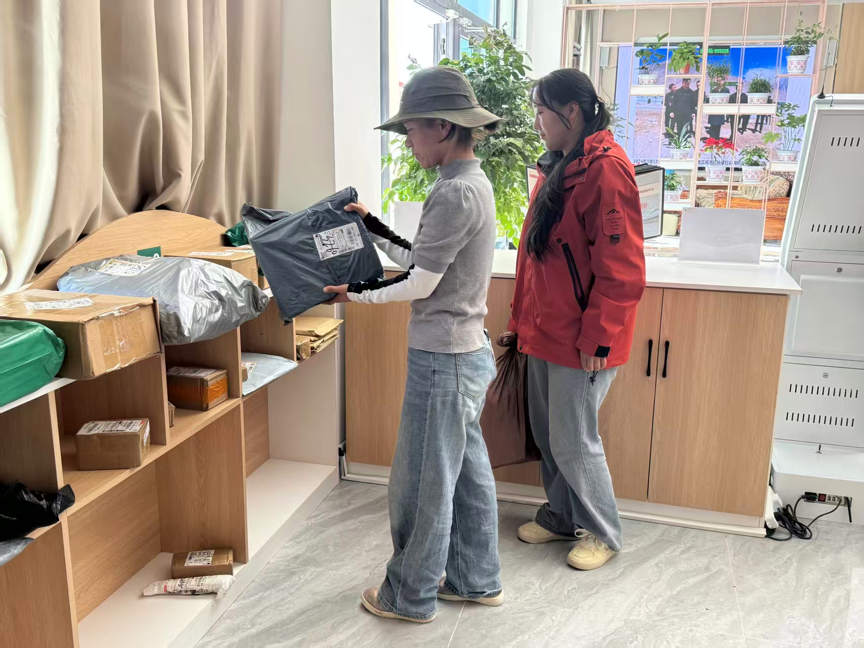 如今网购已成为群众购置商品的一大趋势,为让村民享受到与城市居民同等的快递取件服务,扎嘎新村寄递物流站将快递投递点设在便民服务大厅,快递包裹按照尾号整齐有序地摆放在放置点,极大地方便了收件人查找包裹,而在投送包裹前,邮递员会及时与收件人联系,确认包裹是送货上门还是寄存在便民服务大厅。