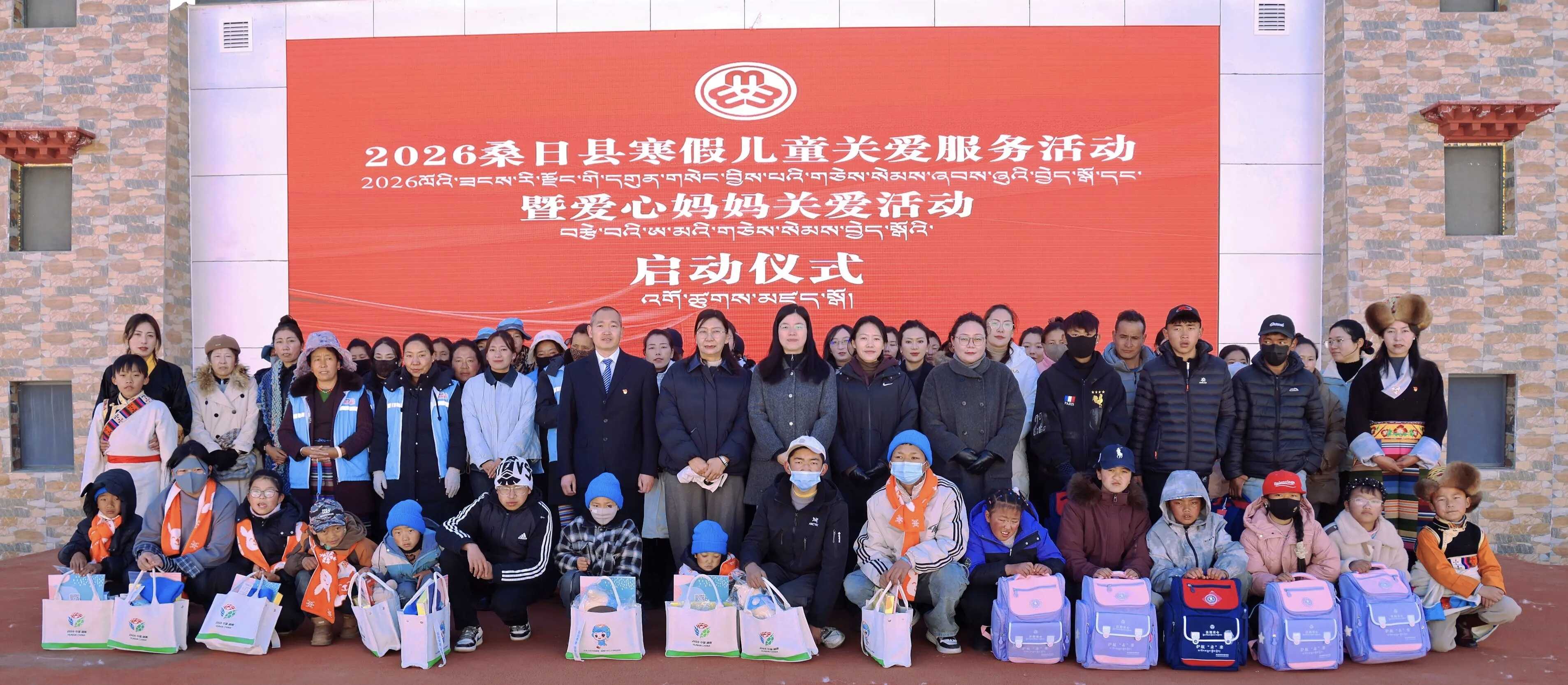 春临雪域迎佳节,爱满桑日护童心。值此2026年春节与藏历新年双节将至、万象更新之际,2月4日,桑日县群团工作部联合县民政局隆重举行“把爱带回家—暖心护航伴成长”2026年寒假儿童关爱服务暨爱心妈妈关爱结对行动启动仪式。县委副书记李国霞、县人大二级调研员杨显芳、县人民政府副县长白玛央金、县人民法院院长旦增宗巴等领导出席,各乡镇、县直各单位相关负责人,爱心妈妈代表、巾帼志愿者、学校师生及家长代表共200余人齐聚一堂,以爱为桥,为桑日儿童的寒假生活注入温暖力量。