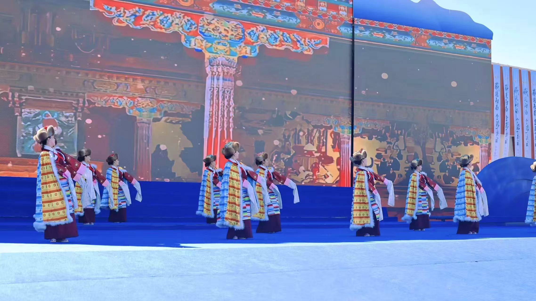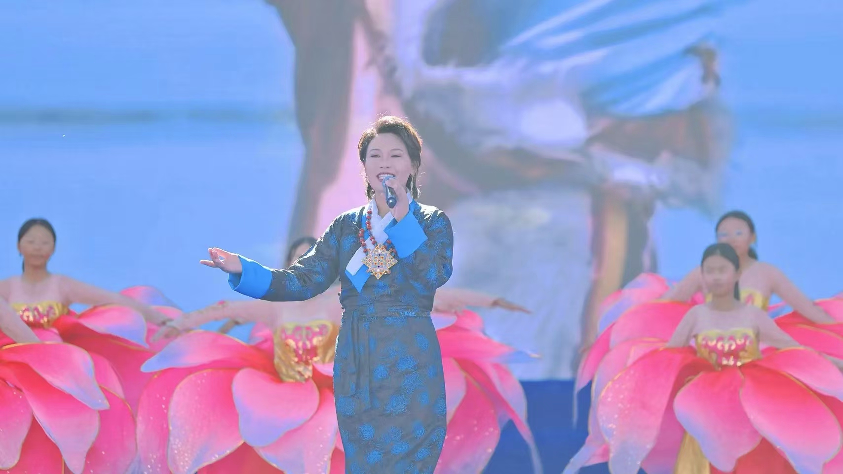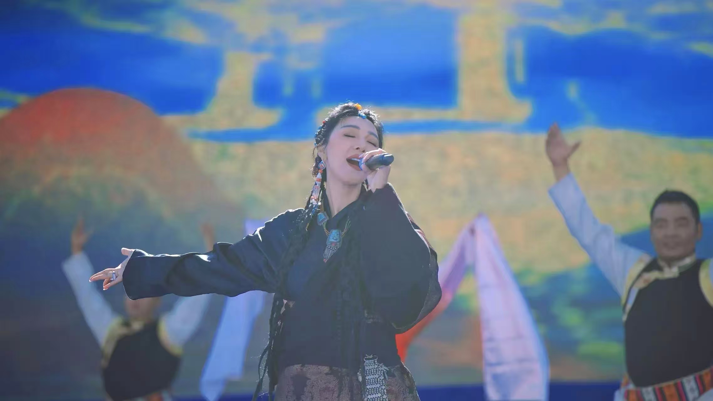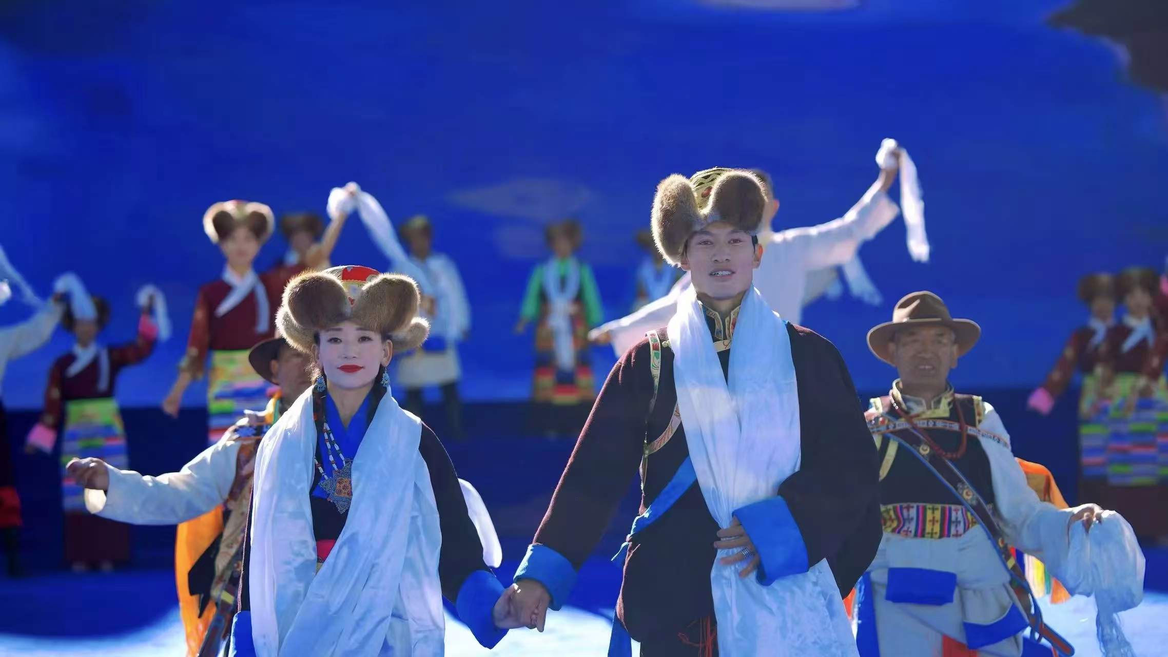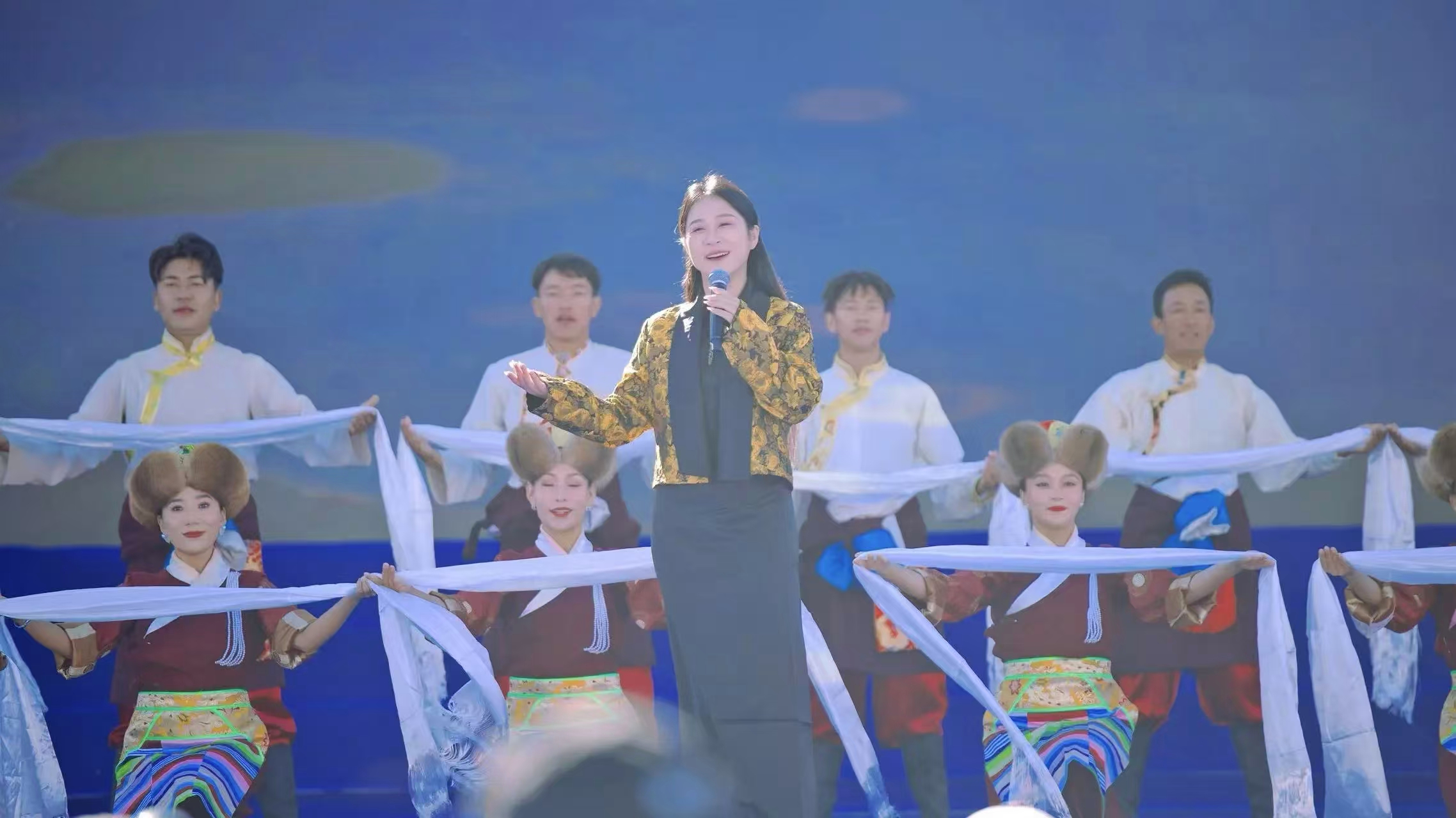 盛典在一场以民歌为魂、山水为幕的大型文艺演出中拉开帷幕。仪式歌舞《天籁之约》率先登场,整场演出分为“天籁之约扎西德勒”“相聚思金拉错唱响金彩桑日”“同心同行书写美好”三大篇章,一个个富有民族特色与非遗韵味的节目接连上演,赢得观众热烈掌声。
