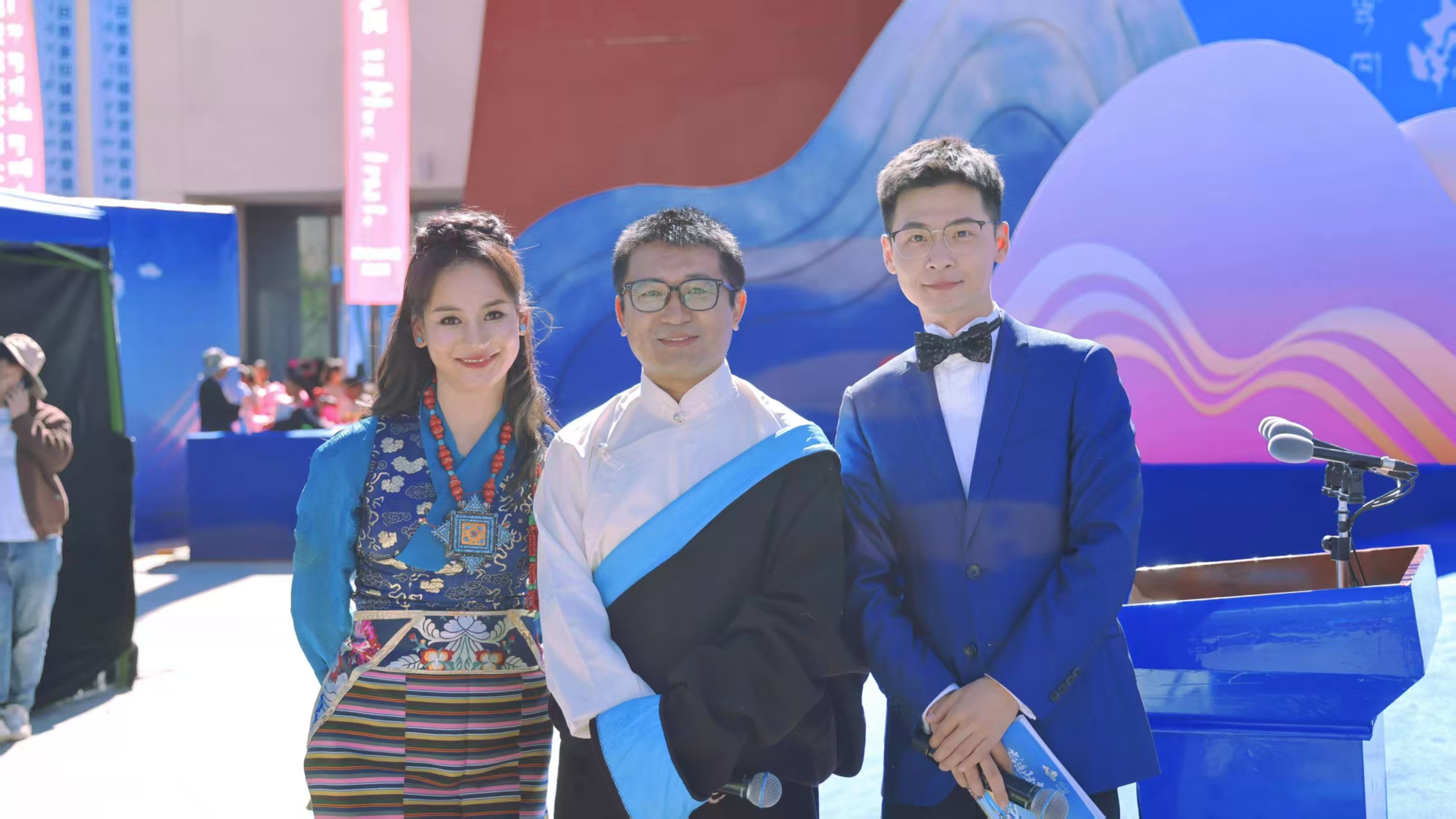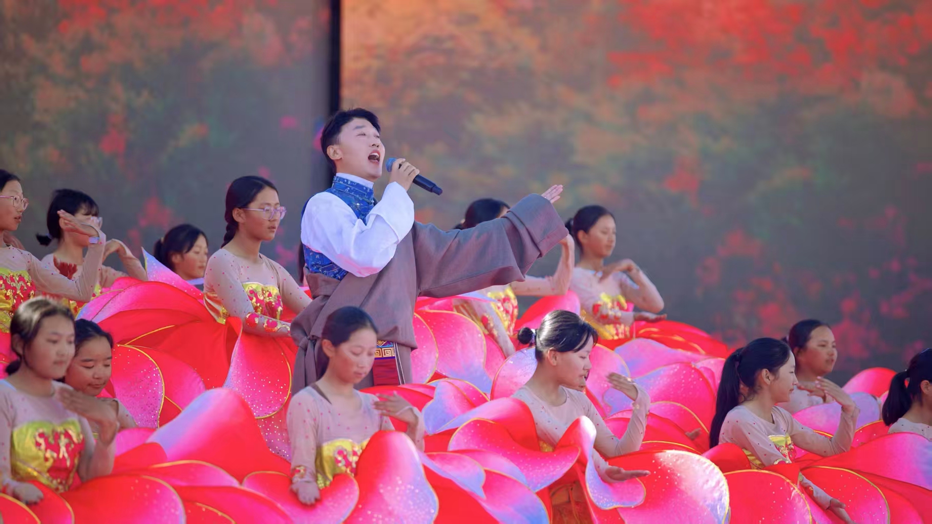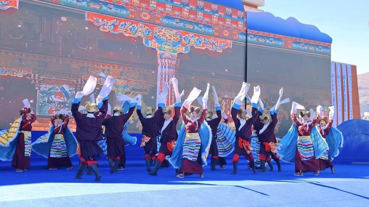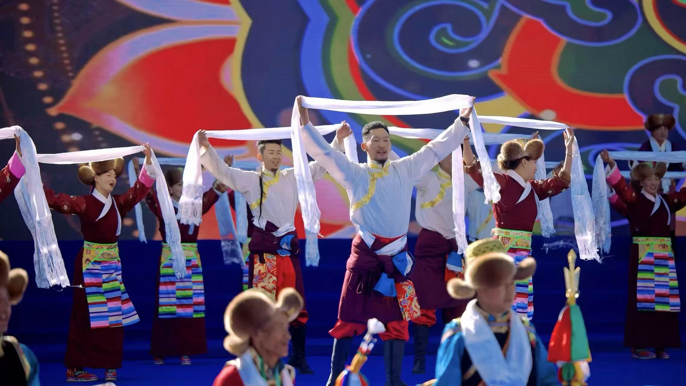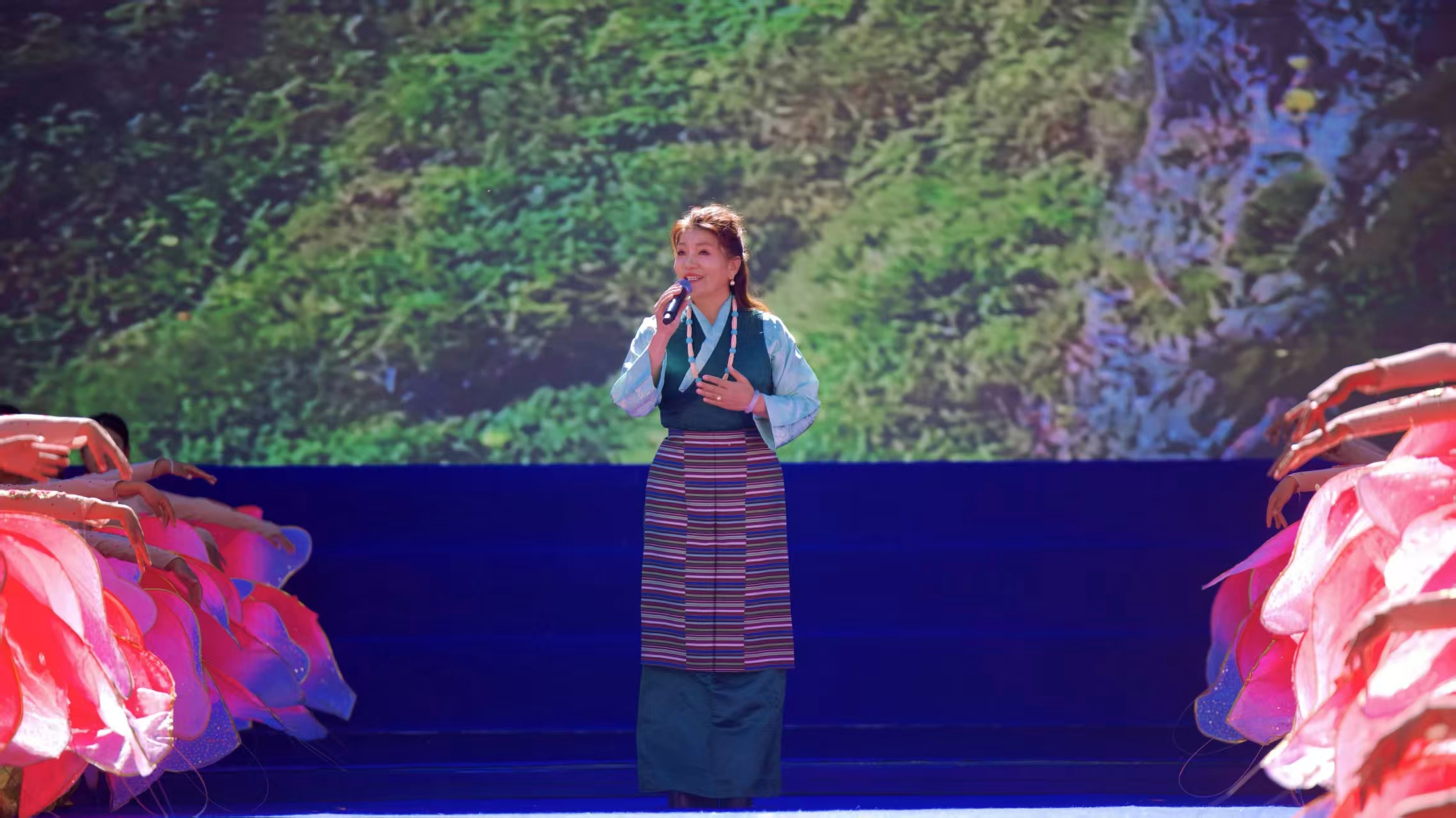 盛典在一场以民歌为魂、山水为幕的大型文艺演出中拉开帷幕。仪式歌舞《天籁之约》率先登场,整场演出分为“天籁之约扎西德勒”“相聚思金拉错唱响金彩桑日”“同心同行书写美好”三大篇章,一个个富有民族特色与非遗韵味的节目接连上演,赢得观众热烈掌声。