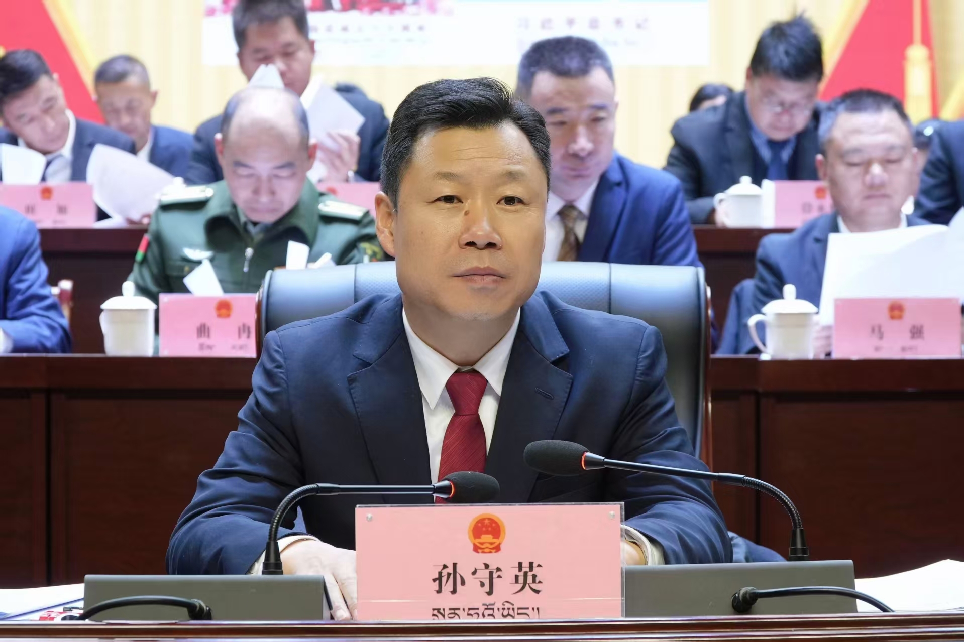 本次会议应到代表122名,实到103名,符合法定人数。孙守英、次仁达瓦、赵孙恕、巴桑次仁、李国霞、唐万森等县级领导及大会主席团成员在主席台就座。闭幕会由县委书记、大会执行主席、主席团常务主席孙守英主持。