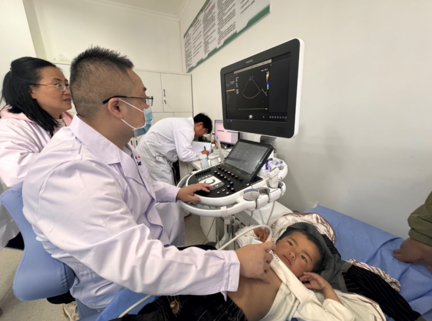 此次活动由湖南省卫健委和湖南援藏工作队共同组织,现场筛查采取“听诊+彩超”双轨模式,有效提升了检出准确率。当天共筛查了41例先心病患儿,病症包括轻度二尖瓣反流、三尖瓣反流、肺动脉瓣反流等。