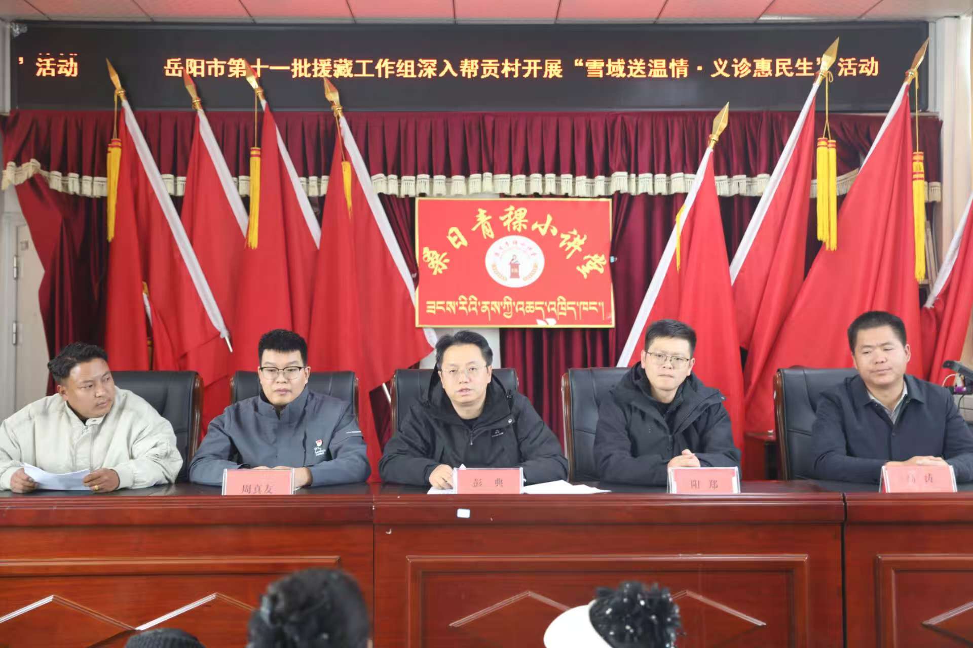 近日,岳阳第十一批援藏工作组深入桑日县增期乡帮贡村,组织开展“雪域送温情∙义诊惠民生”主题活动,将党的温暖、专业的医疗服务与实实在在的民生关怀,送至雪域高原的农牧民群众身边。桑日县委常务副书记、常务副县长、岳阳援藏组组长彭典,县委常委、副县长、岳阳援藏组副组长阳郑参加。